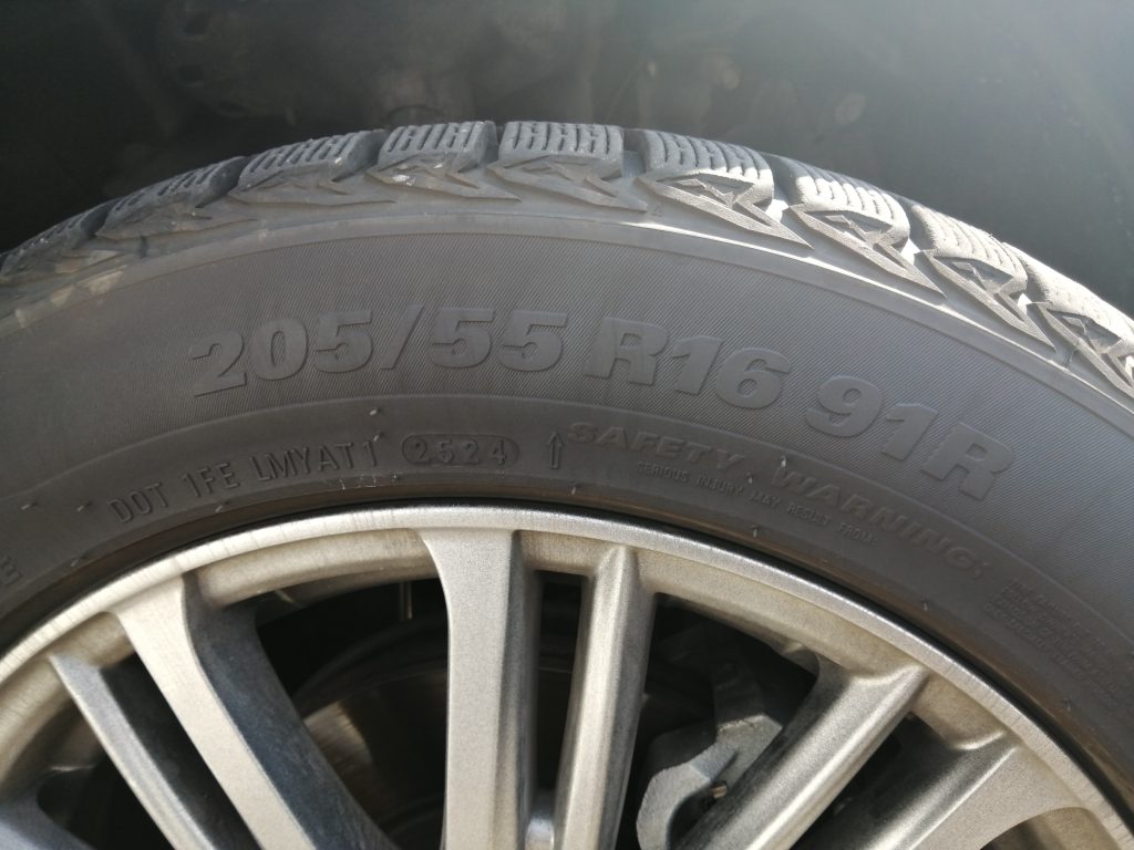 下の写真のタイヤサイズは205(タイヤ幅)/55(扁平率)R16(インチ)になります。