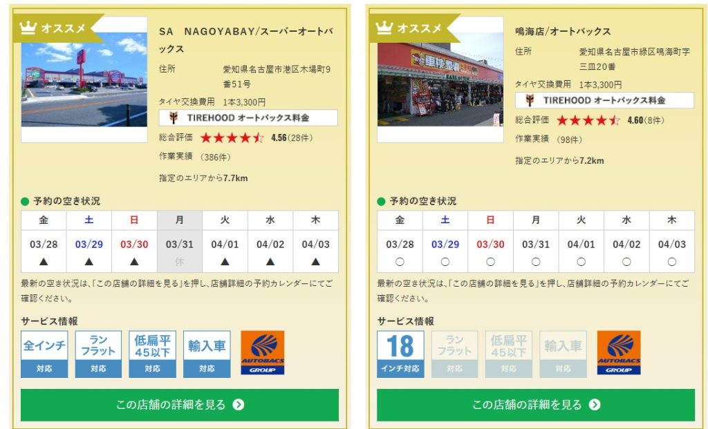予約前にタイヤのサイズをしっかり確認しないと、自分自身が二度手間になってしまうので注意したいところですが、もし間違えてしまった場合でも不要なタイヤを購入する必要がないのは助かりますね。