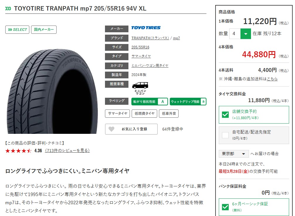 - タイヤの性能、適正車種、口コミが確認できる