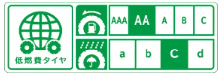 | ウエットグリップ性能(下段) | 雨天時などぬれた路面でのブレーキ性能。 安全面に直結。 a~d(aが最も安全性が高い) |